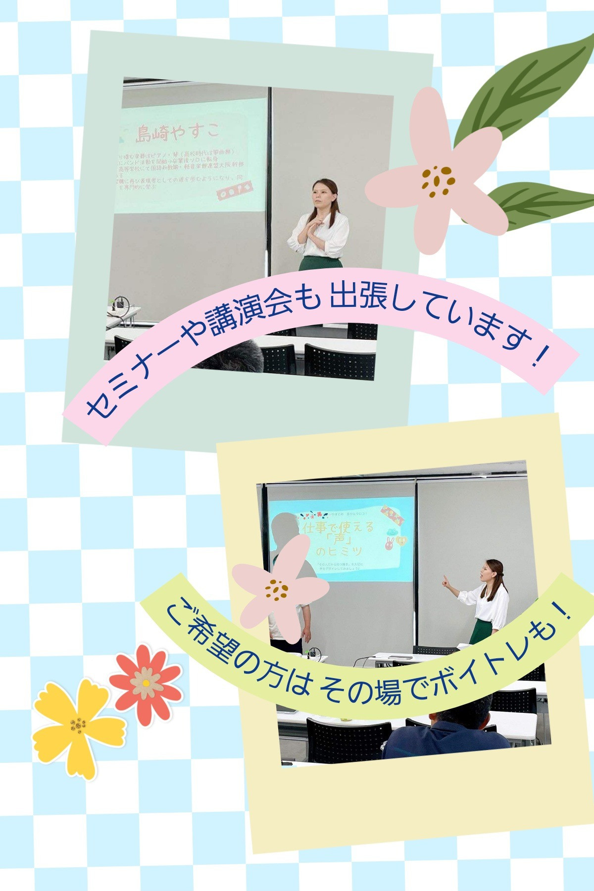 学校園・専門学校などの先生、企業の代表者さんや営業職の方、介護施設や福祉施設、病院のスタッフさんなどを対象としたセミナーや講演会、出張レッスンに呼んでいただく機会が増えてきました。いつもありがとうございます🌸